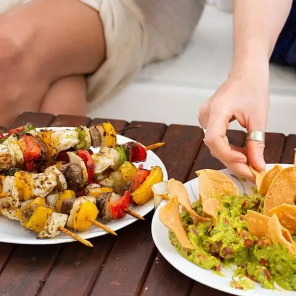 Le moment phare ? Une pause gourmande ancrée dans l’un des plus beaux recoins du lagon, où vous dégusterez des brochettes surf & turf grillées à bord, accompagnées de guacamole maison, jus naturels et bières fraîches.